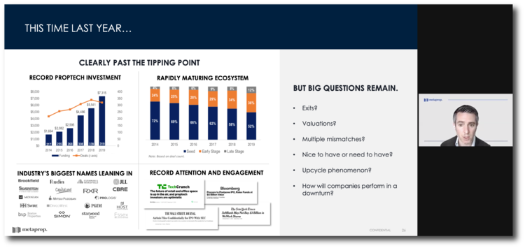 Emerson said, “This time, like all times, is a very good one, if we but know what to do with it.” Accordingly, we shared how our investment business is making the most of the crisis. At the same time, we made sure to acknowledge hardships throughout the prop-tech ecosystem while celebrating some tremendous growth and success stories.